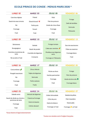 Menus scolaires