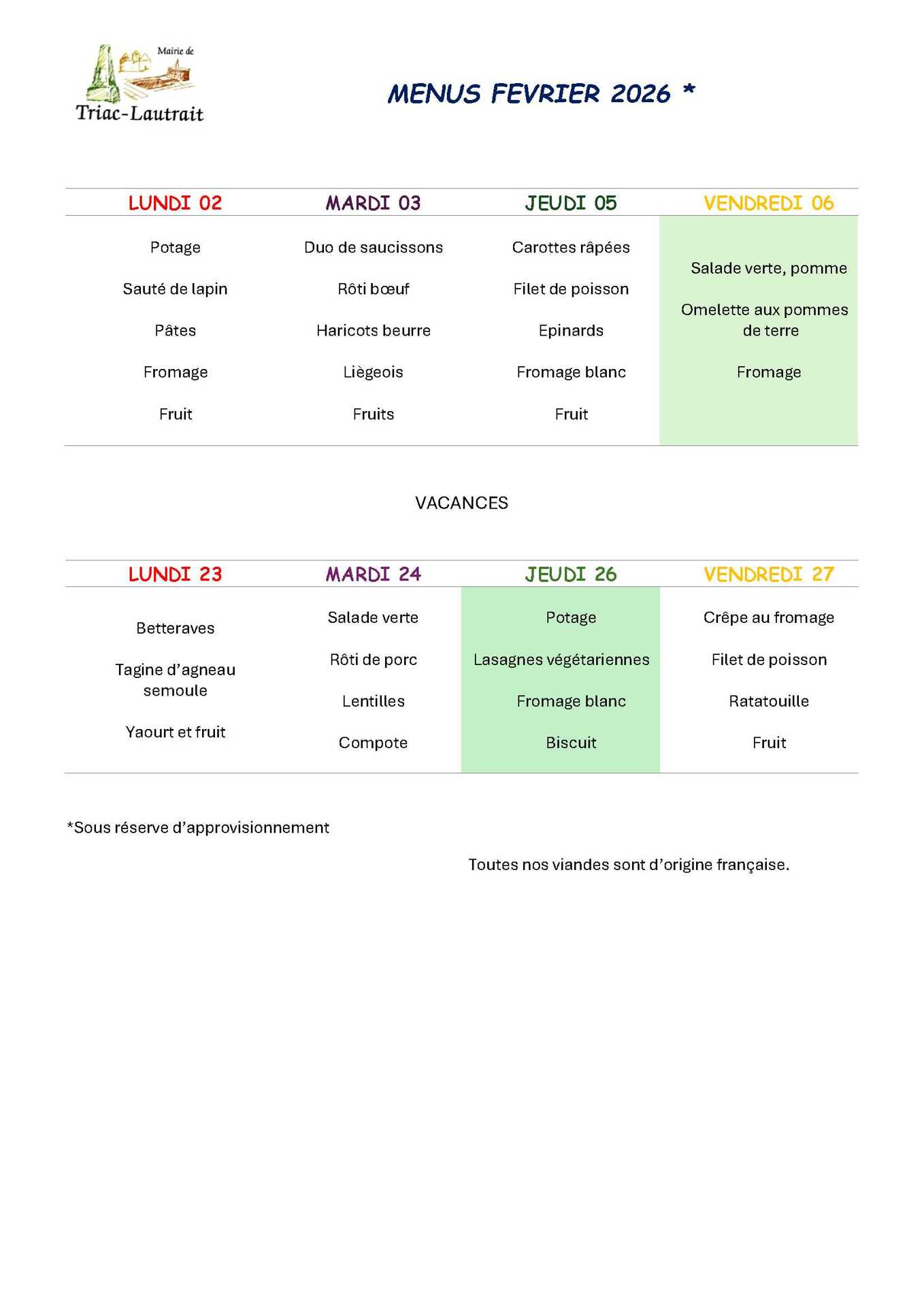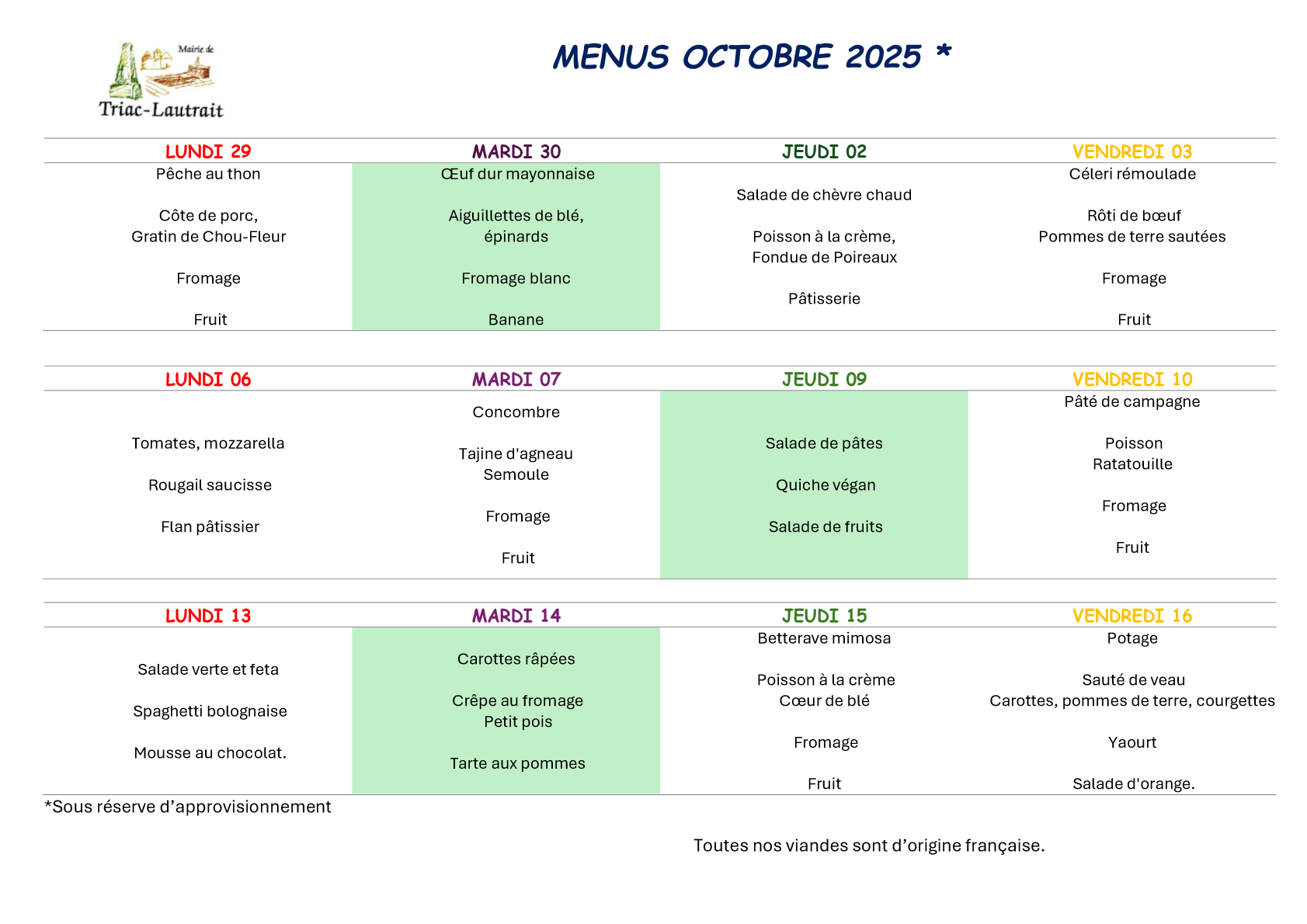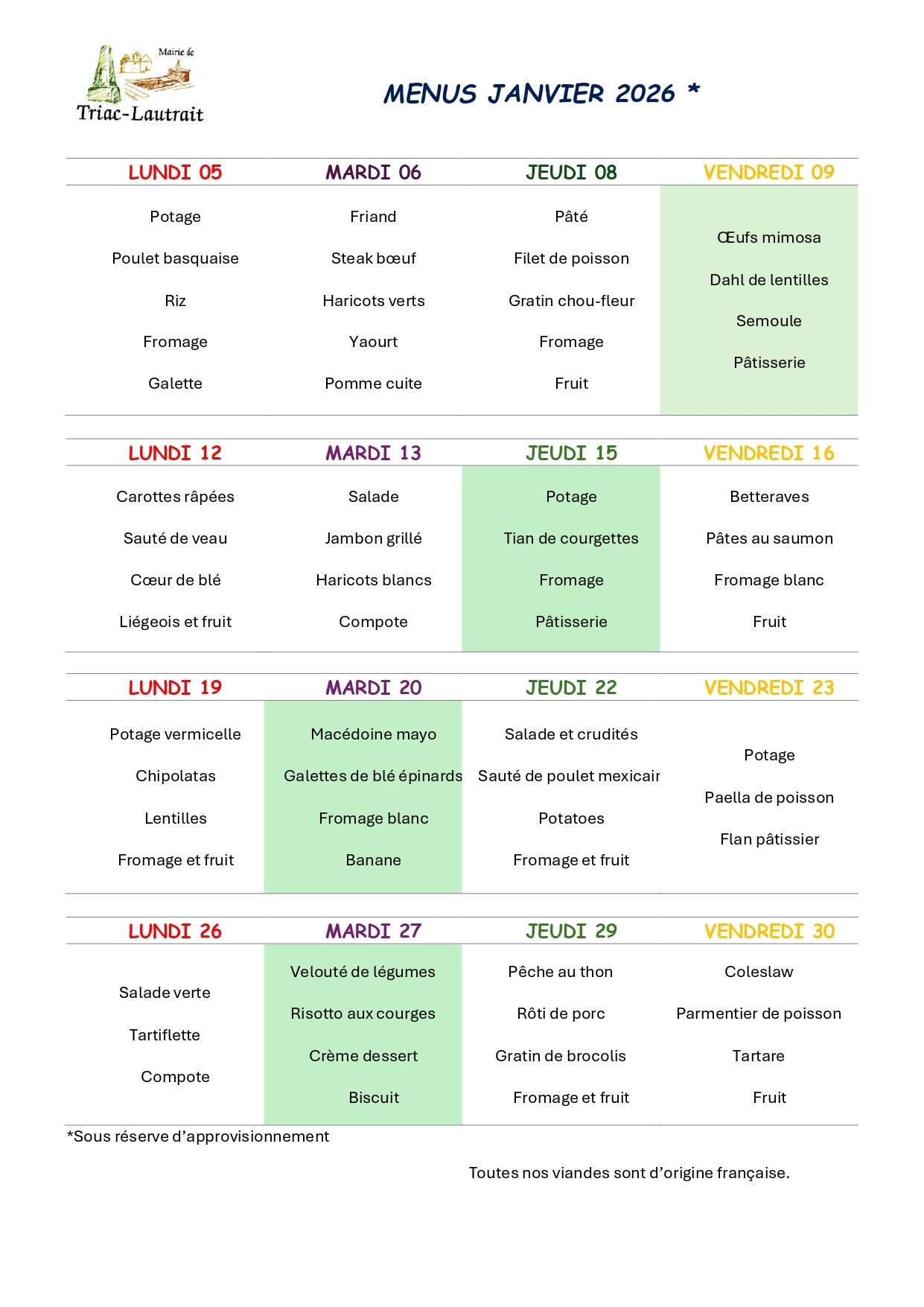 Les menus sont élaborés par notre cantinière en collaboration avec une diététicienne.