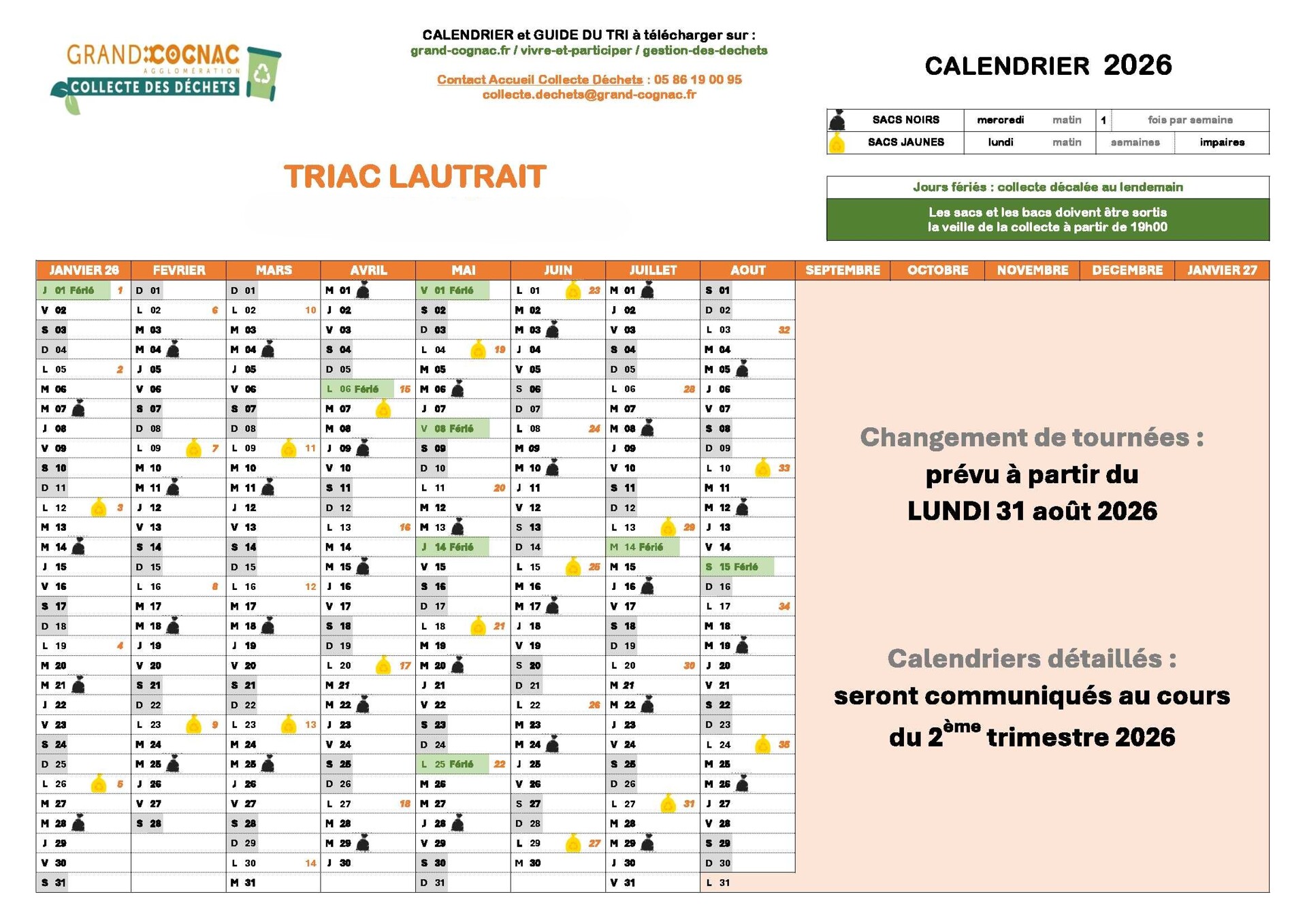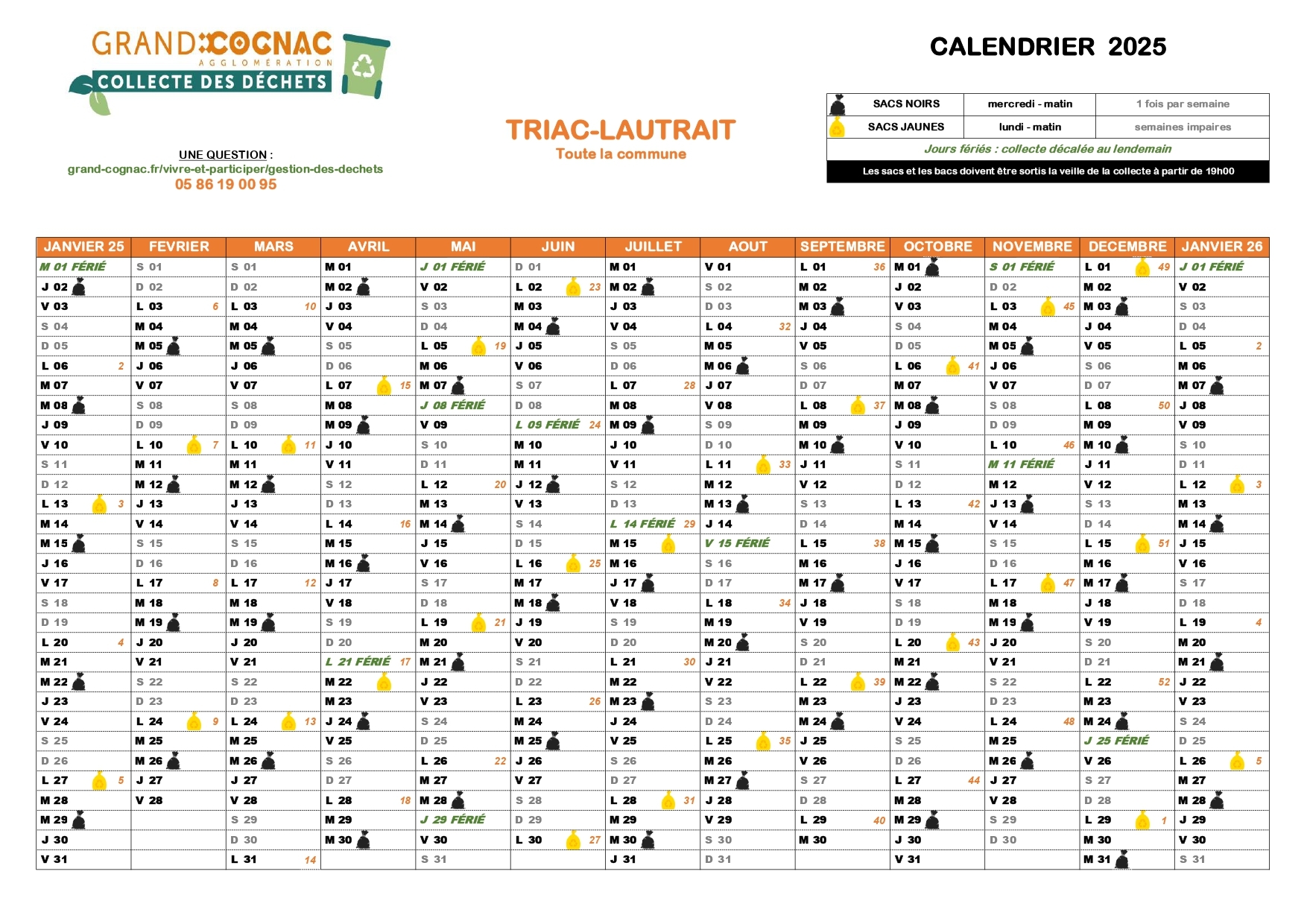 Calendrier des collectes de déchets - secteur "Triac" - "Lautrait" - "Lantin"